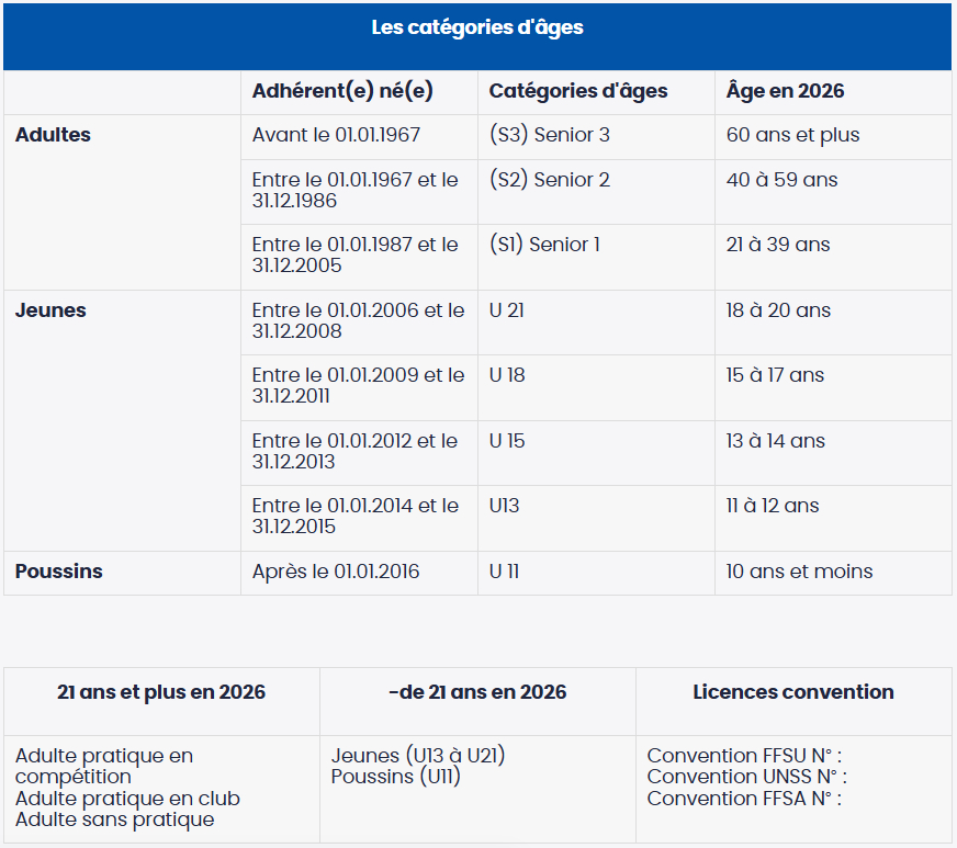 – 117 euros la licence compétition adulte S1, S2 & S3